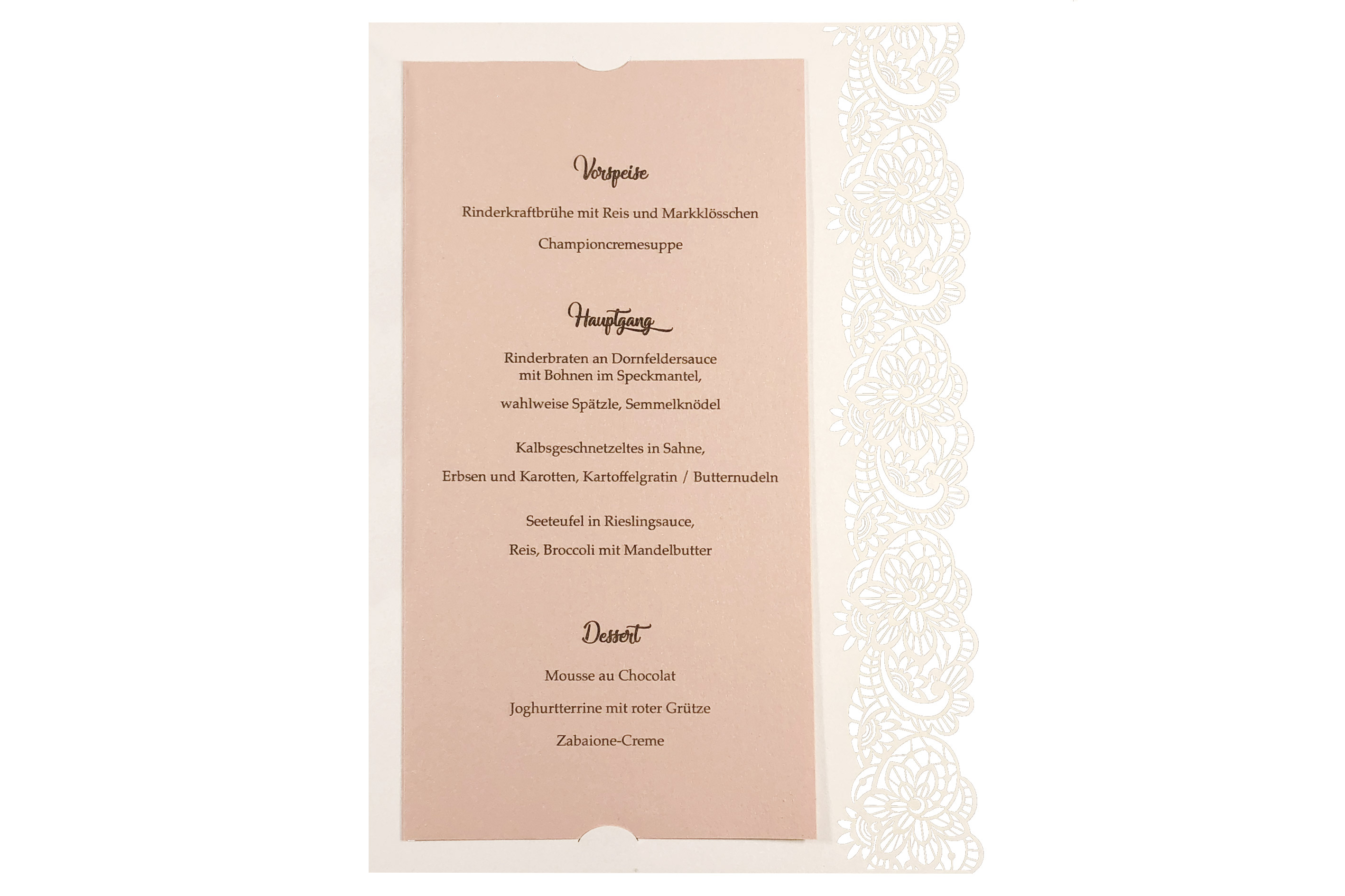 Seitenformat: Hochformat. Druck: auf Innenseite. Text: wird als Worddokument (unformatiert) von Ihnen beigestellt. Die Layoutanpassung erfolgt durch Tiebeldruck. Eine Ansicht zur Druckfreigabe erhalten Sie per E-Mail. +++ Durch Anklicken des rechten Bildes sehen Sie eine vergrößerte Version bzw. weitere Darstellungen der Karte. Ideal kombiniert mit 17D319 - Dankkarte, 17H119 - Hochzeitskarte, 17T419 - Tischkarte