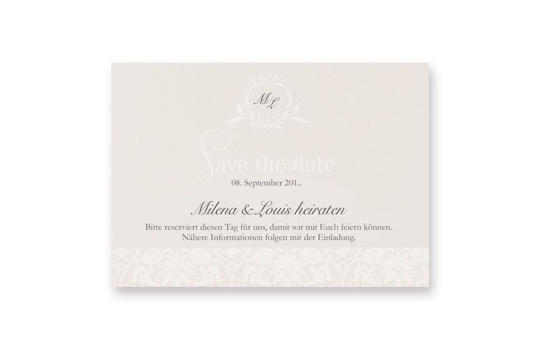 Seitenformat: Querformat. Druck: auf Innenseite. Text: wird als Worddokument (unformatiert) von Ihnen beigestellt. Die Layoutanpassung erfolgt durch Tiebeldruck. Eine Ansicht zur Druckfreigabe erhalten Sie per E-Mail. +++ Durch Anklicken des rechten Bildes sehen Sie eine vergrößerte Version bzw. weitere Darstellungen der Karte. Ideal kombiniert mit 17D301 - Dankkarte, 17M201 - Menükarte, 17T401 - Tischkarte, 17H101 - Hochzeitskarte